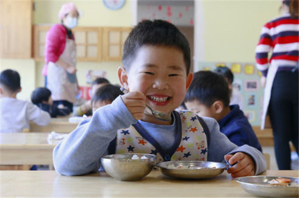 中央军委机关事务管理总局红星幼儿园(黄寺园)的孩子在吃饭(12月21日摄)。 新华社记者 刘艺 摄