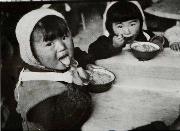 1940年-1942年间,中央托儿所的孩子们在吃饭(资料照片)。新华社发