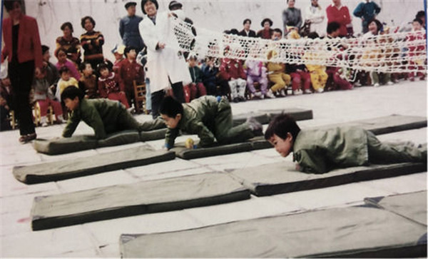 20世纪八九十年代,总政幼儿园的孩子们在开展军事体育游戏(资料照片)。新华社发