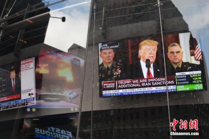2020年1月8日,特朗普发表电视讲话称,美国将对伊朗实施新一轮经济制裁。中新社记者 廖攀 摄