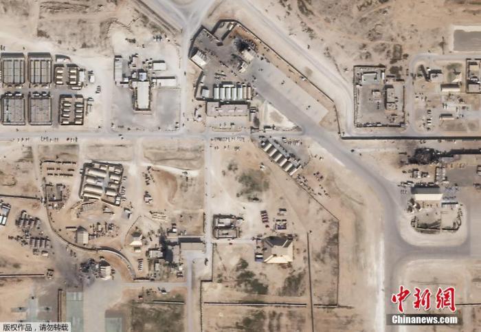 2020年1月8日,卫星图像显示,伊拉克西部的美国空军基地在受到来自伊朗的火箭袭击后,部分建筑物明显受损。