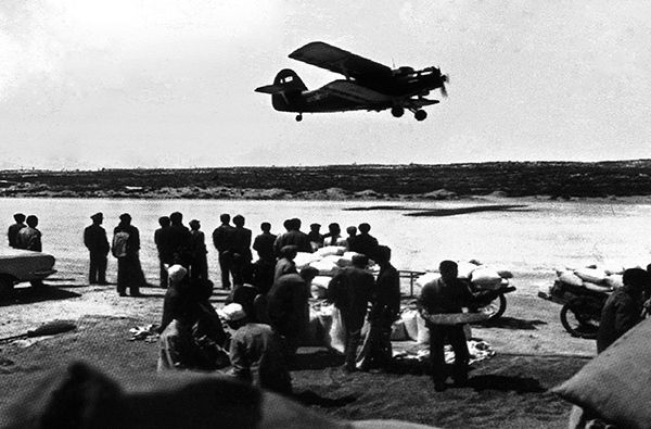 1982年5月,空军某团运-5飞机从西北某机场起飞,飞赴甘肃省临夏回族自治州太子山地区(资料图片)。新华社发