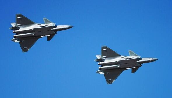 歼-20战斗机双机挂弹飞行展示