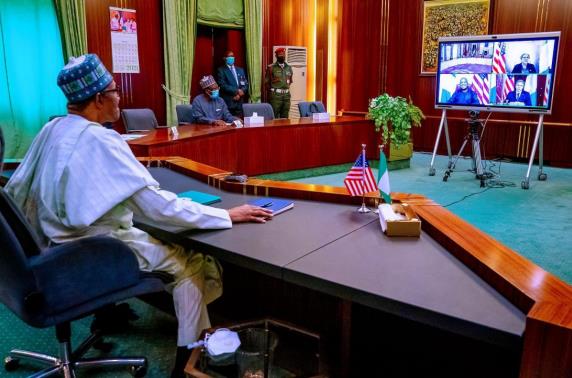布哈里在与布林肯视频会见时表示,在尼日利亚和萨赫勒地区、中非和西非及乍得湖地区等非洲次区域应对安全挑战的行动中寻求美国的支持,以避免溢出效应,并敦促美国考虑将美军非洲司令部从德国斯图加特迁往非洲,以加强该地区正在进行的安全努力。会见中,布哈里对美国决定废除被称为“穆斯林禁令”的移民限制、以及重新加入世界卫生组织和巴黎气候变化协定表示赞赏。