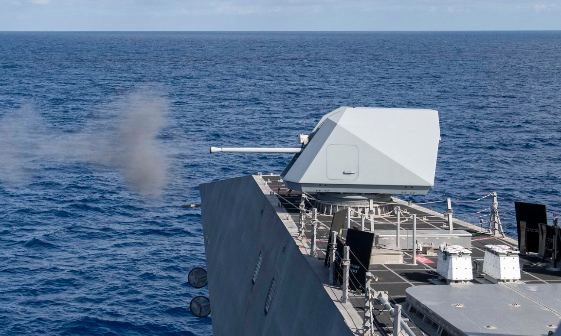 “查尔斯顿”号濒海战斗舰在南海进行实弹射击演练