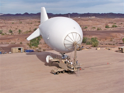 如何搬上天?采用飞机作载机的话,成本高且持续任务时间短,即便是大型无人机,单次任务时长也不超过40小时,要进行持续不间断的预警监视,需要频繁轮换。如果使用大型飞艇,这一问题便迎刃而解。PTDS系统使用的大型飞艇,滞空时长25天,最大任务高度1.5千米,能携带500千克任务载荷,可对周边160千米范围内目标进行持续监视。另外,PTDS系统采用无动力设计,飞艇使用缆绳固定在地面上,并通过电缆、光纤与地面供电站连接。