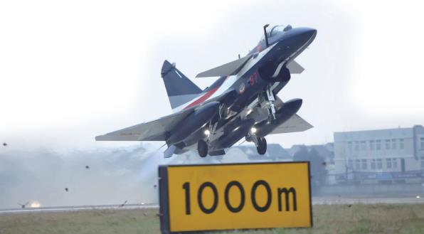 八一飞行表演队的歼-10C腾空而起。