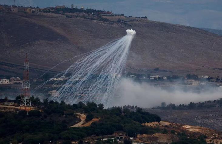 11月12日,在黎以边界地区,以军发射白磷弹制造烟幕。外媒资料图片