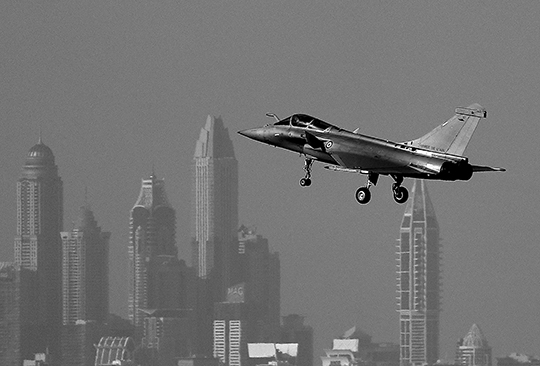 11月13日,在阿联酋迪拜国际航空展上,一架法国“阵风”战机准备降落。 新华社发