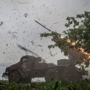 俄国防部补充说,122毫米火箭式杀伤爆破弹在15公里外齐射,侦察分队使用“海鹰-30”无人综合系统对目标被打击情况进行了检查。