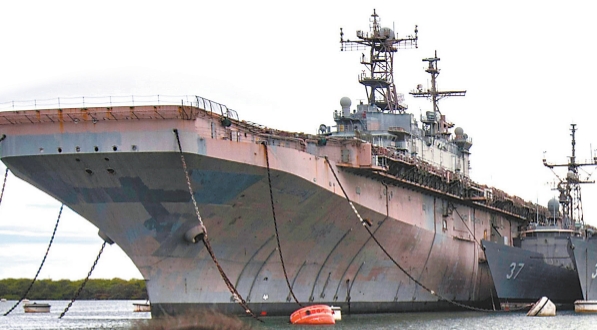 据介绍,“塔拉瓦”号于1976年服役,主要部署在西太平洋和中东地区,曾先后参与海湾战争、阿富汗战争和伊拉克战争。它的满载排水量高达4万吨,可以搭载气垫船和登陆艇执行传统的抢滩登陆任务,也可以利用宽大的直通甲板起飞重型直升机发动垂直登陆作战。2009年退役后,该舰一直停泊在夏威夷珍珠港的福特岛。