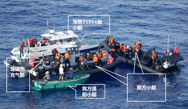 中国海警在官方通报中表示,菲运补船危险接近、蓄意碰撞中方正常航行的船只。中国海警对菲船艇依法采取警告拦阻、登临检查、强制驱离等管制措施。菲律宾GMA和“巴拉望新闻”等媒体也承认,菲方此次运补行动被中方的反制行动挫败。报道称,在此次行动中,菲方出动多艘船艇,目标是向位于仁爱礁上的菲方非法“坐滩”军舰运送物资,但这些船艇均未能接近仁爱礁。