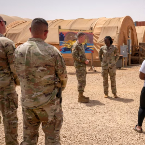 2024年5月,美军一少将在位于尼日尔首都尼亚美的101军事基地发表讲话。图源:美媒