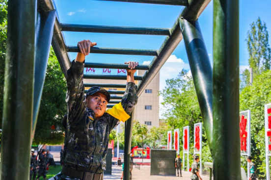 近日,北疆地区持续高温,驻守在这里的武警兵团总队某支队官兵不畏高温酷暑举行“铸剑——2024”军事训练大比武。来自基层与机关的7支代表队同台竞技,在射击、五公里武装越野、400米障碍、刺杀、擒敌对抗等多课目连贯考核中全面锤炼官兵实战能力。