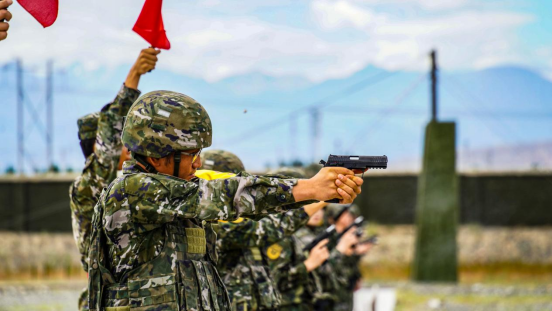 比武人员进行手枪精度射击