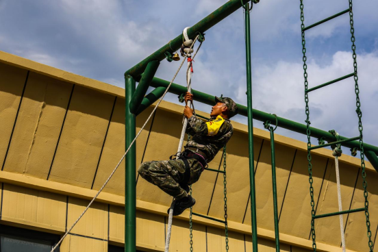 400米障碍中,比武人员勇过“云梯”