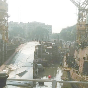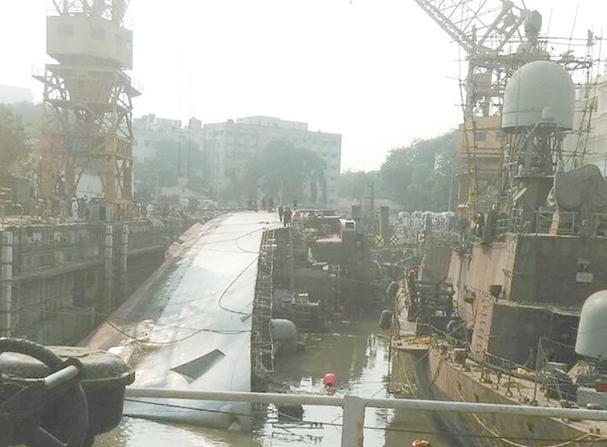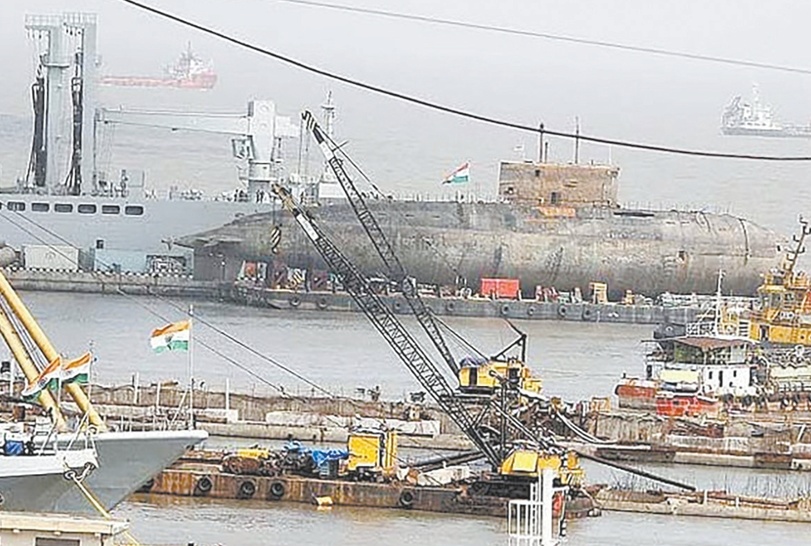 然而对于印度海军来说,孟买海军船坞实在是“伤心处”。此前已经有两艘印军主力舰艇在此维修时发生严重事故。2013年,印度从俄罗斯进口的“基洛”级常规潜艇“辛杜拉克沙克”号在孟买海军船坞维修时发生火灾,随后爆炸沉没。《印度斯坦时报》称,这艘潜艇的沉没是1971年以来印度海军最糟糕的悲剧。印度海军的后续调查显示,该事故是印度潜艇官兵的一系列错误操作致使潜艇上装载的“俱乐部”反舰导弹爆炸,18名印度潜艇官兵在事故中丧生,该潜艇打捞起来后被送往俄罗斯北德文斯克大修,但耗费8000万美元和7个月时间仍未能修好,只能被拖回孟买海军船坞作为印度海军突击队的训练平台。2017年,最终这艘废弃潜艇作为靶舰在孟买外海被击沉。