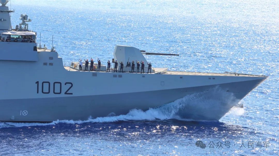 埃及海军“加拉拉”号护卫舰官兵向护航编队官兵挥手告别。梁磊 摄