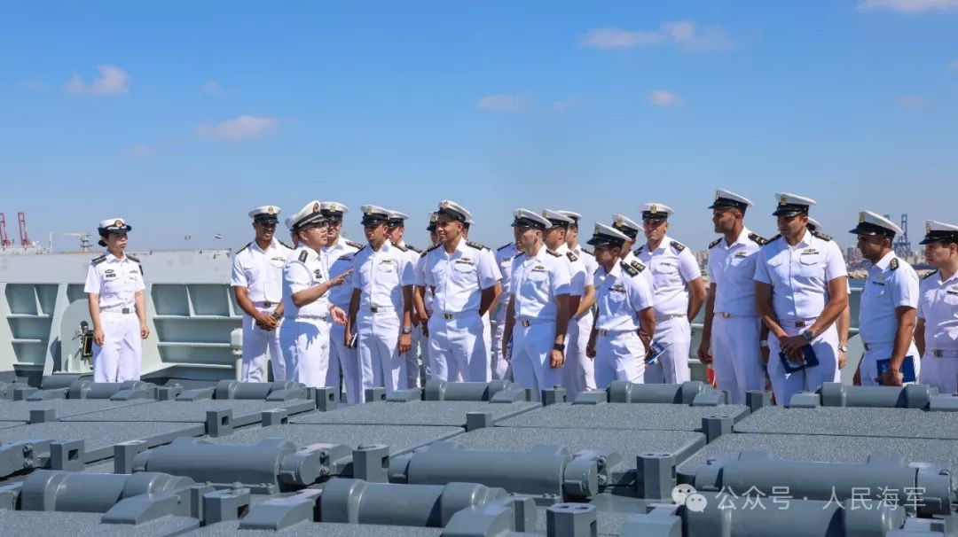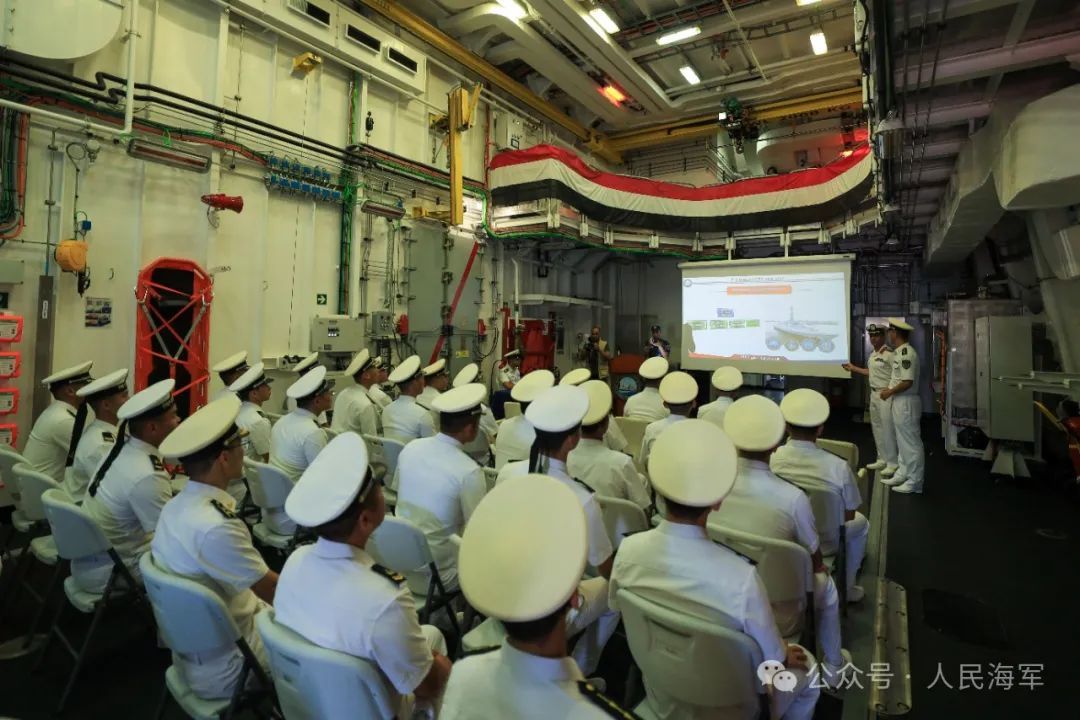 访问期间,埃及海军司令登上洪湖舰参观并交流。禹泽铭 摄