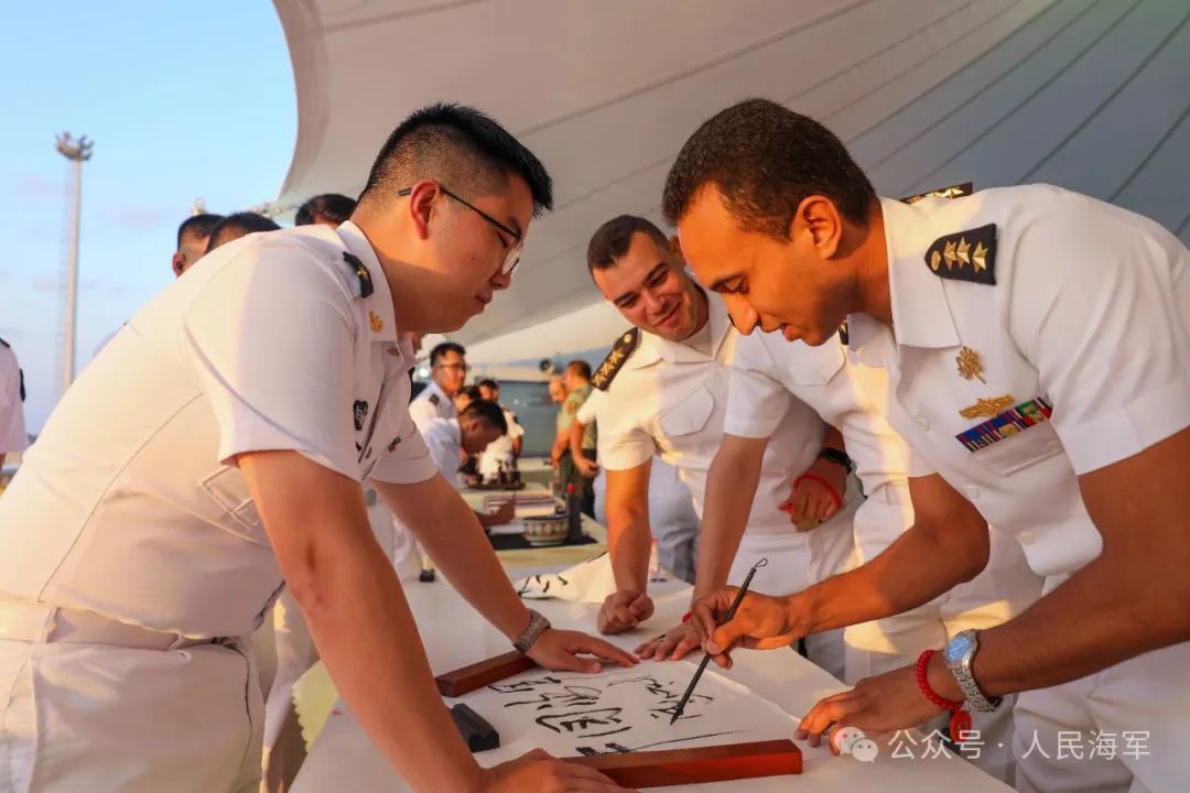 编队官兵代表与埃及海军院校官兵代表合影留念。禹泽铭 摄