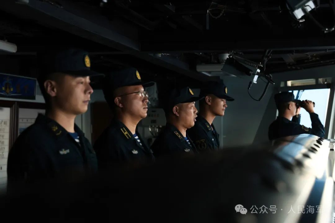 焦作舰官兵观察埃及海军“加拉拉”号护卫舰悬挂的旗语。张大禹 摄