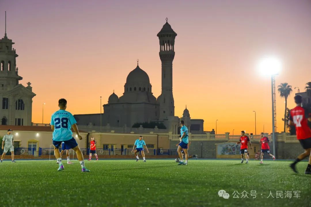 中埃海军官兵共同开展足球友谊赛。陈元增 摄