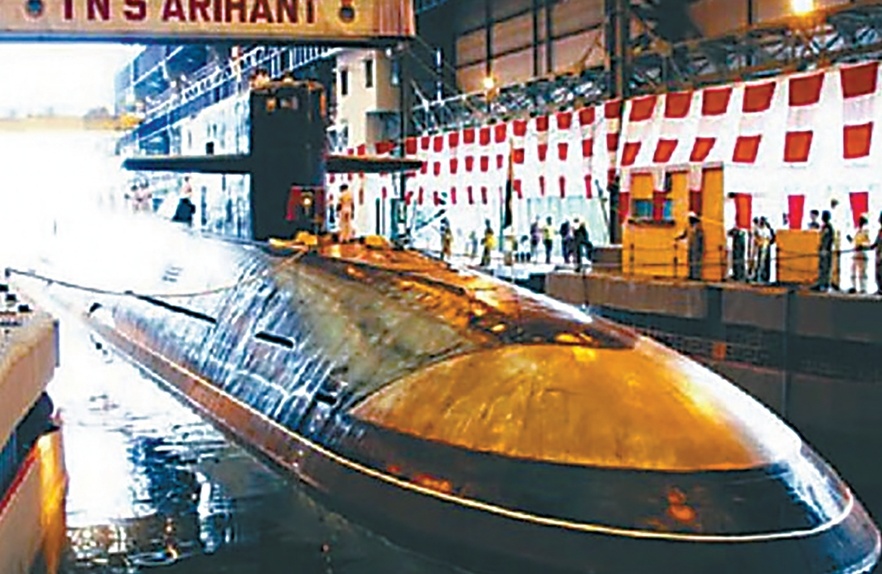与此同时,印度海军国产核潜艇研制项目也在30多年前就同步展开。不同于大部分拥有核潜艇的国家“先发展攻击核潜艇,再在其基础上改建战略核潜艇”的做法,印度海军的国产核潜艇项目一开始就直接瞄着能从水下发射核导弹的战略核潜艇。印度媒体解释说,在印度发展核潜艇期间,印军大力建造的“三位一体”核威慑体系中,海基核能力最为薄弱。印度空基核力量中,“美洲虎”攻击机、法制“幻影2000”与俄制苏-30MKI战斗机可以挂载核炸弹;陆基核力量中,“大地”“烈火”系列弹道导弹也可以配备核弹头;只有印度海军迫于技术能力不足,长期只能在2000吨级轻型护卫舰的飞行甲板上搭载近程弹道导弹发射装置凑数,这种水面发射的弹道导弹基本没有实战意义。因此优先发展能够从水下隐秘发射核导弹的战略核潜艇就成为印度海军的不二选择。