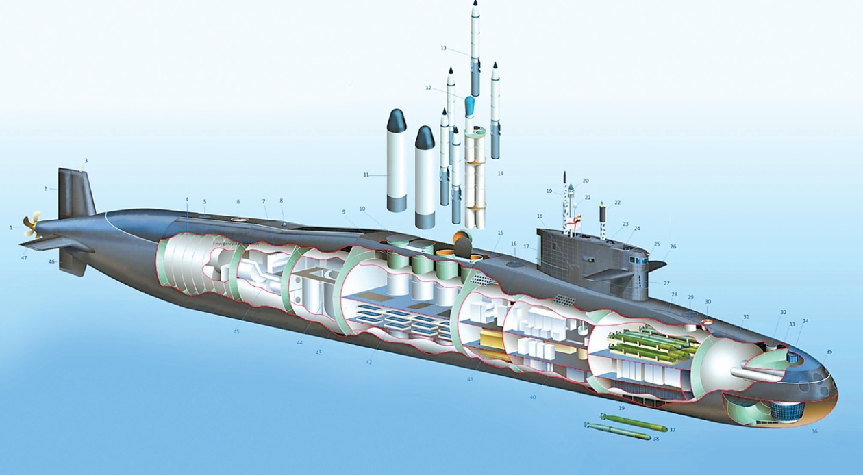 印度“歼敌者”级国产核潜艇的内部结构示意图。(图源:美国“海军新闻”网站)