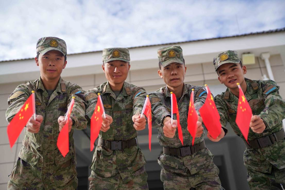 清澈的爱,只为中国。不仅仅是一句话,更是每名战士心中的一份承诺、一份契约,战士们爬上了一座无名高地。临近国庆,他们纷纷想和国旗合影,并为祖国的75岁生日送上祝福。祝愿祖国母亲生日快乐、繁荣昌盛。(崔毅峰、孙浩然)