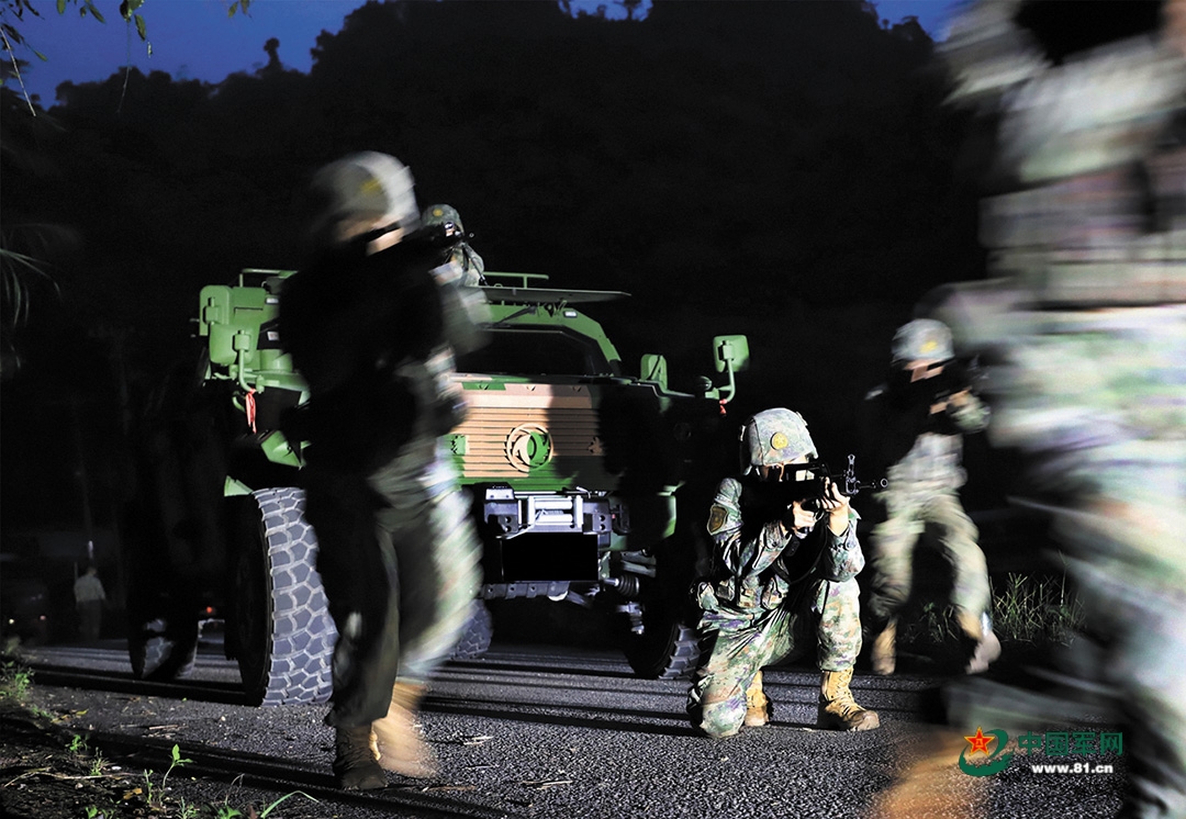 巡逻分队夜间开展边境应急处突训练。