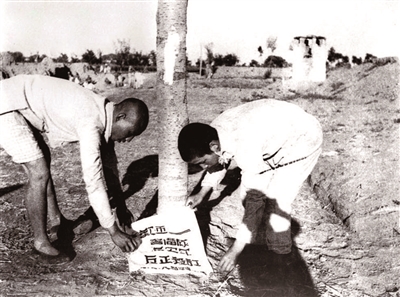 敌后武工队员把争取伪军反正的传单散发在伪军炮楼附近