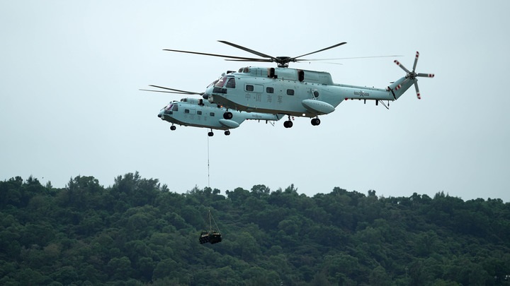 第十五届中国国际航空航天博览会将于11月12日在广东珠海开幕。11月10日,人民海军舰载直升机在广东珠海开展适应性飞行训练。(新华社发)