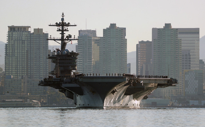 一名海军发言人向美国海军学会新闻网表示,该航母正在第三舰队的任务区域执行例行任务,但未透露更多细节。(编译/涂颀)