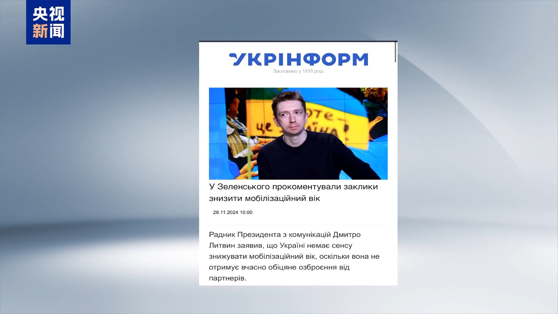 据乌克兰国际文传电讯社28日报道,乌克兰总统顾问利特文在社交媒体上表示,乌克兰降低入伍年龄毫无意义,因为乌克兰没有按时收到合作伙伴承诺的武器,没有足够的武器装备已动员的士兵。利特文还表示,乌克兰不能以牺牲前线年轻人员为代价来弥补后勤延误或支持方面的优柔寡断。