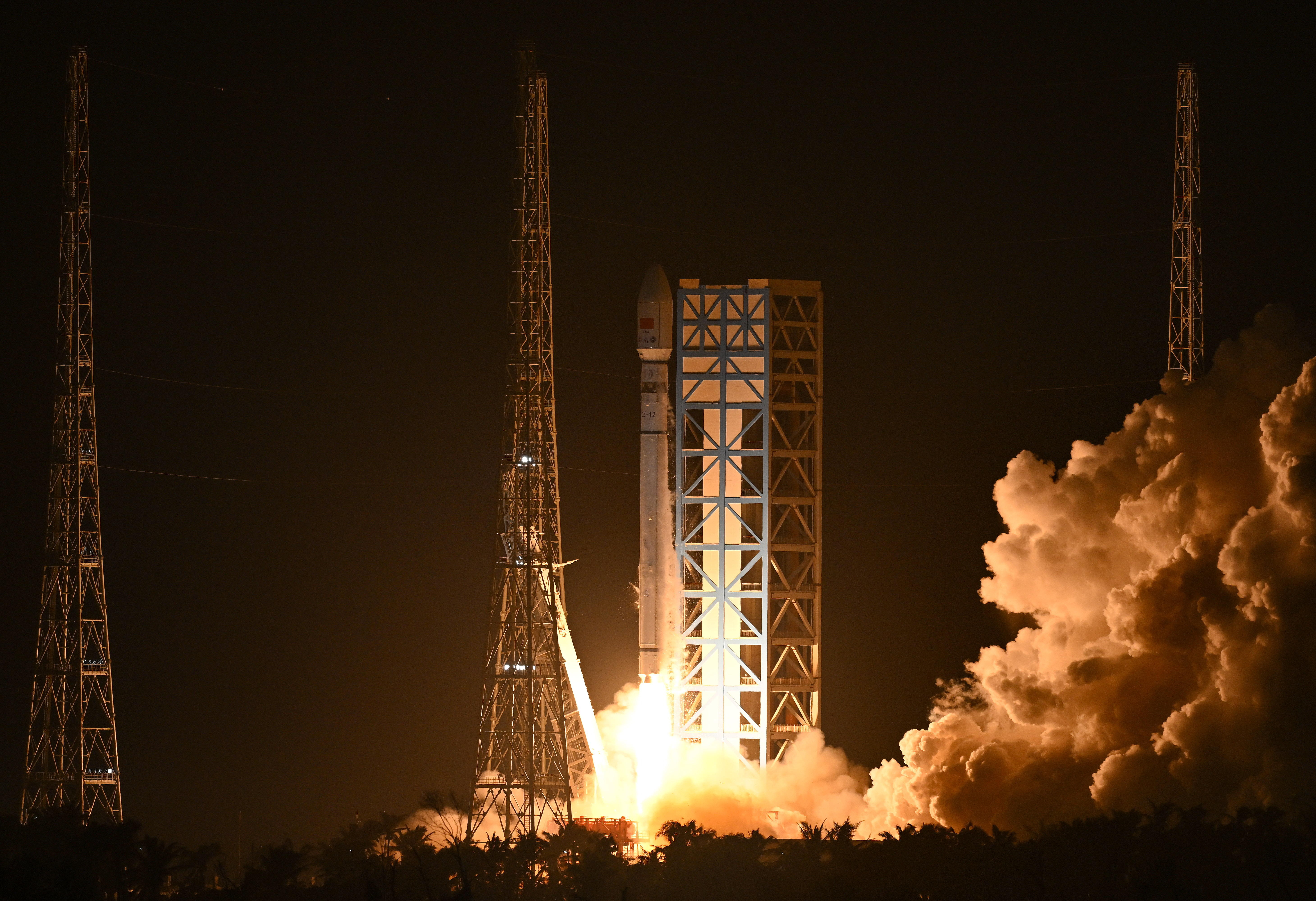 11月30日晚,长征十二号运载火箭从海南商业航天发射场点火起飞。(新华社)
