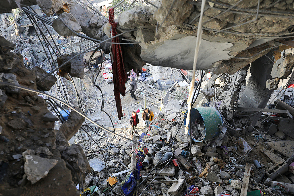 2025年1月6日,加沙地带,以色列袭击布赖杰难民营,民众查看受损的房屋。(视觉中国)