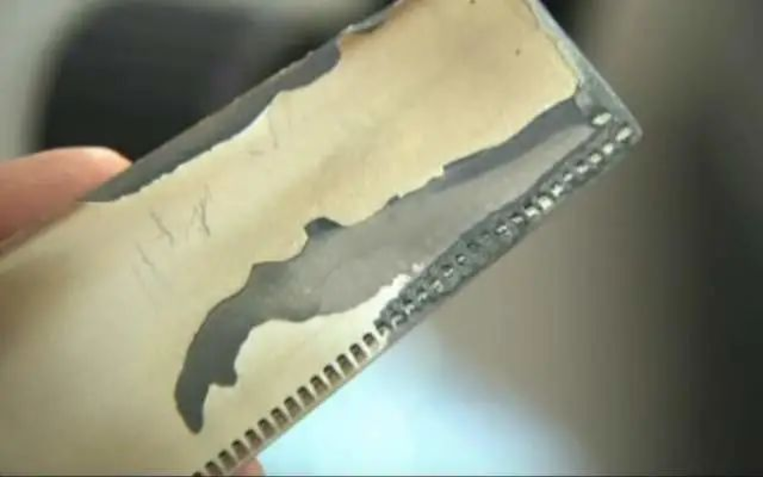 长期使用以后损坏的涡轮叶片,表面隔热涂层大面积剥落。