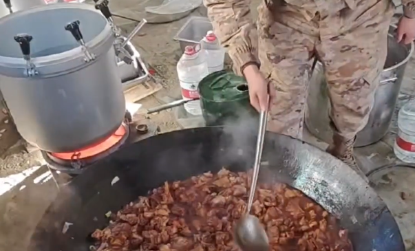 不远处,西藏军区保障部某部搭建的就餐点内,高压锅“嗞嗞”冒着蒸汽,官兵们都在各自岗位上紧张忙碌着制作饭菜。