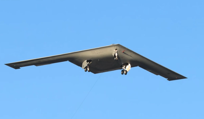 美空军B-21轰炸机在爱德华兹空军基地进行飞行测试。