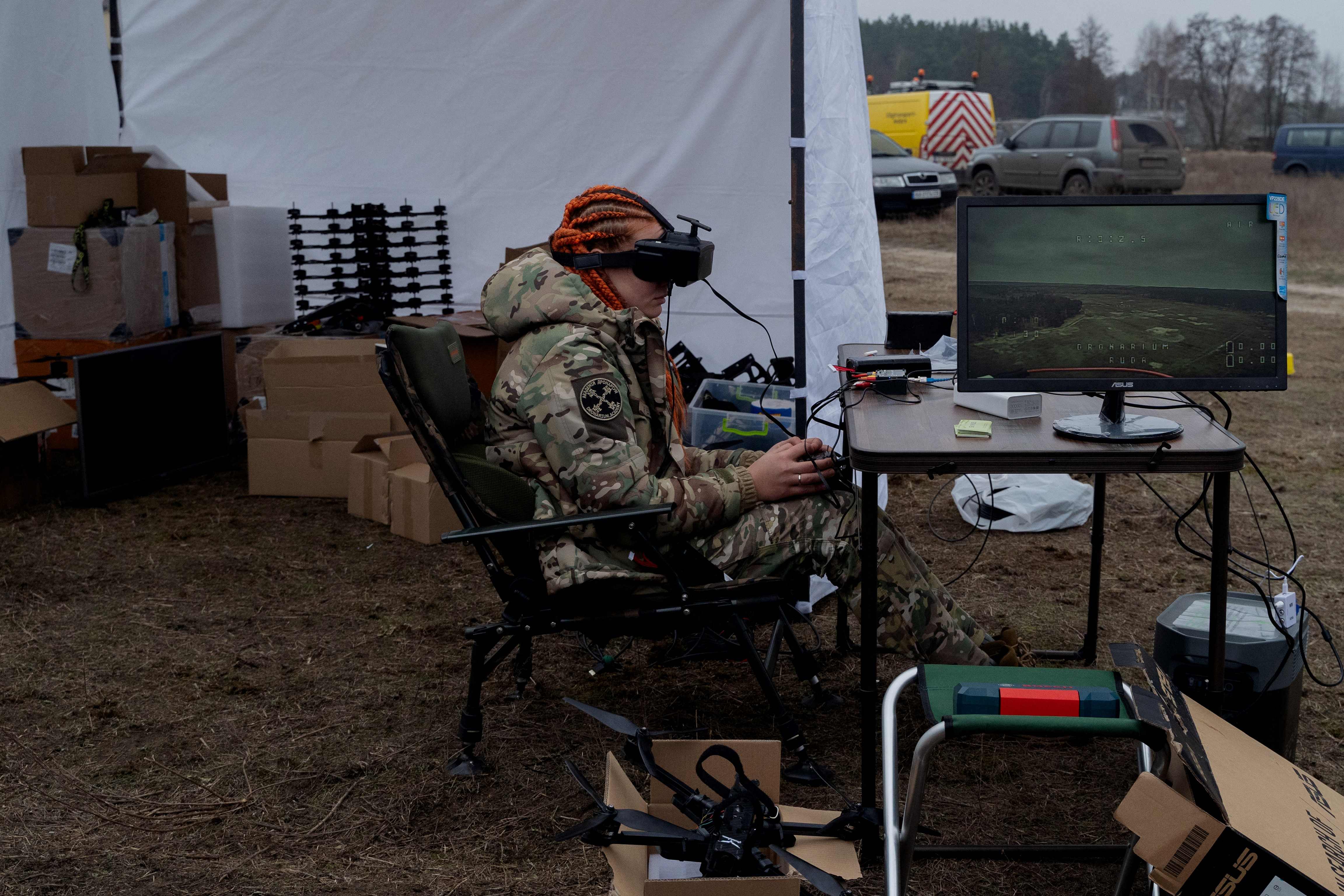 1月29日,一名乌克兰军人正在操控无人机。(法新社)