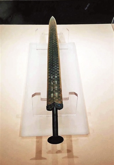 春秋战国时期是青铜剑发展的高峰期。尤其南方吴越地区多丘陵树林,水网纵横,军队作战以配备剑、盾等兵器的步兵为主。在水战中,士兵更是将短剑作为主要兵器。因此,吴越两地的铸剑技术远高于中原各诸侯国,铸造出吴王夫差剑、越王勾践剑等享有盛名的精品名剑。这一时期的剑,剑身呈加长趋势,由西周时期的30厘米左右发展为50厘米以上。同时,古人还采取了改进剑身剖面、用锡含量不同的铜水浇铸剑刃和脊的方式,提高剑身强度。这导致在春秋战国之交,剑取代了青铜刀,确立了在短兵器中的霸主地位。