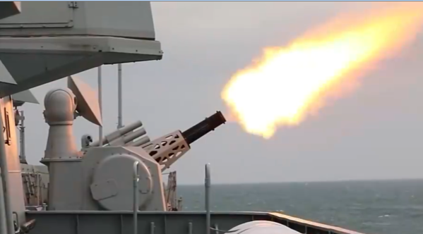 近日,东部战区海军某护卫舰支队资阳舰、宜兴舰等多艘舰艇组成编队,奔赴某海域开展实战化训练。训练中,舰艇编队围绕对海突击、舰炮射击、联合搜救等实战化课目展开专攻精练。看各舰炮弹划破长空,精准命中目标。