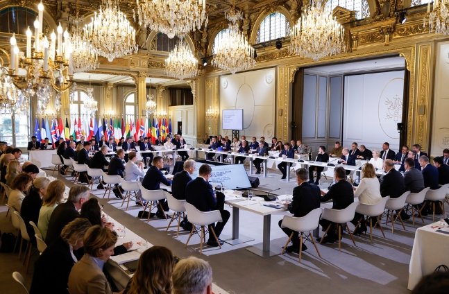 27日,法国总统马克龙、英国首相斯塔默等27个国家的领导人和政府首脑在巴黎举行支持乌克兰的“志愿者联盟”峰会。 (IC photo)