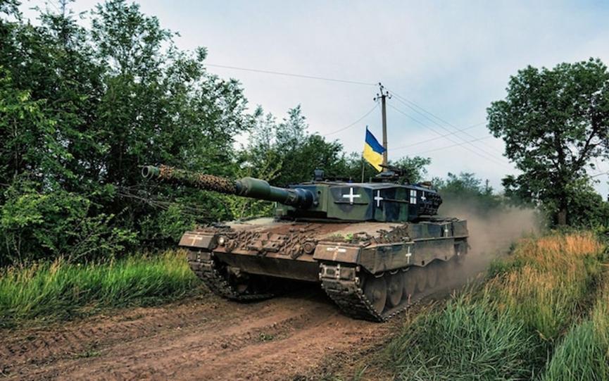 在乌克兰扎波罗热地区的一辆“豹”-2坦克 图源:外媒