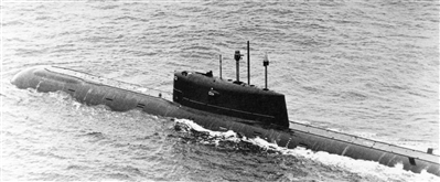 苏联M级685型攻击核潜艇在水中前行。资料图片