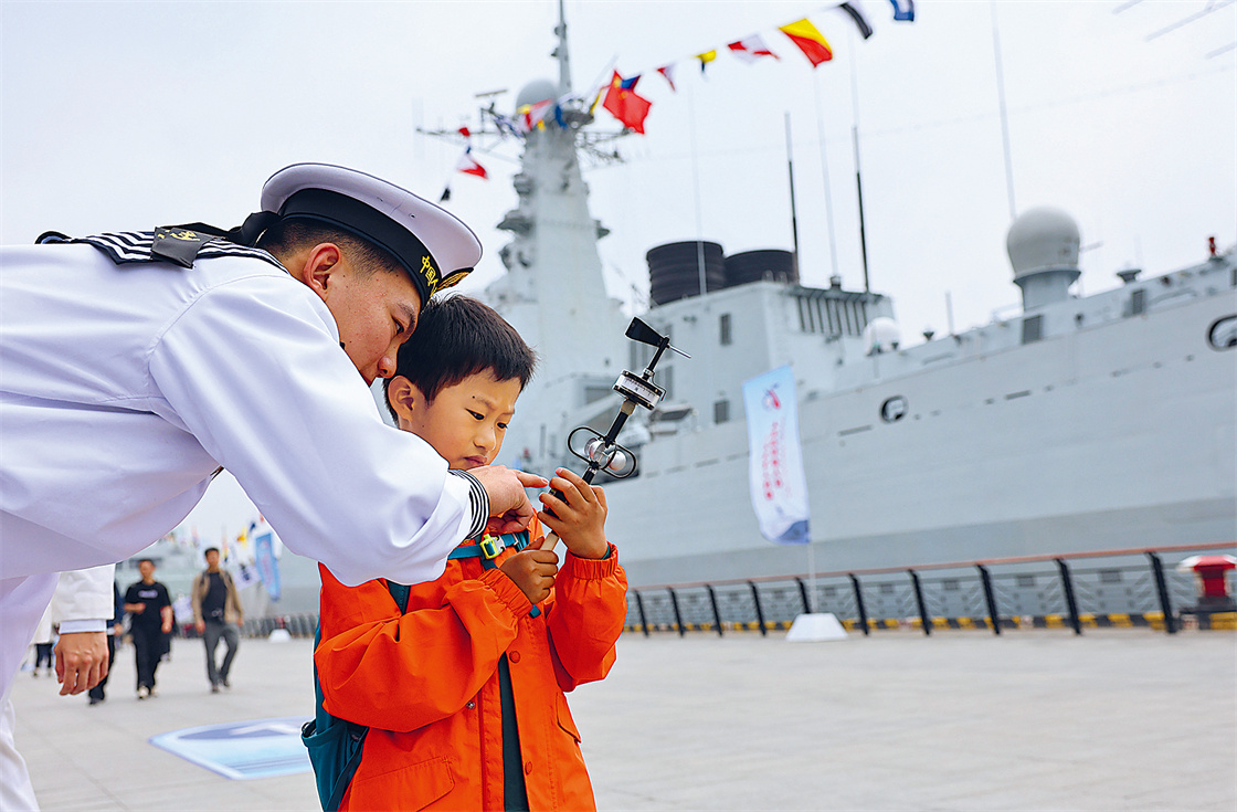 “报告舰长!设备检查完毕。”22日清晨,“90后”战士李崇兴和战友们完成舰艇开放参观前的巡检工作。
