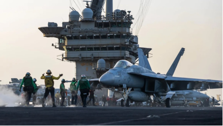据美国有线电视新闻网(CNN)、《国会山报》等媒体报道,美国海军当地时间28日发表声明称,美军一架F/A- 18E“超级大黄蜂”战斗机在“哈里•杜鲁门”号航空母舰机库牵引时意外坠海,目前已在海上“失踪”。报道援引一名美国官员消息披露,现场初步报告显示,这架战斗机坠海与航母为躲避也门胡塞武装袭击有关。