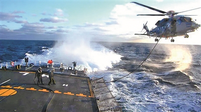 遂行紧急任务时。直升机执行反潜、预警等时间紧急类任务时,在不中断任务流程的情况下,会采用悬停加油方式,以尽快完成油料补给。如此,既可完成对直升机的“输液”,也能确保直升机的搜索视野,增加执勤时间。