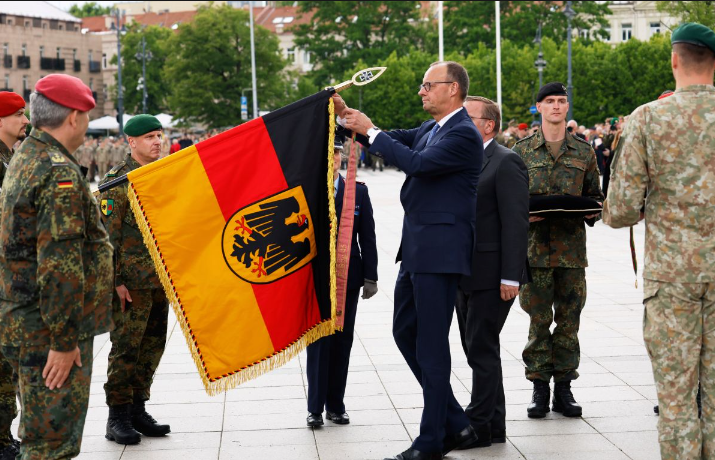 据美联社5月22日报道,德国总理默茨22日出席了德军驻立陶宛旅的组建仪式。这支部队的成立具有历史性意义,旨在协助保护北约东翼。