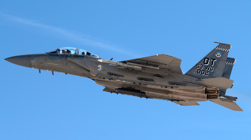 在性能方面,F-15EX的飞行速度可以达到2.5马赫,作战航程达到2000英里(约合3200公里)左右,作战半径达到800英里。